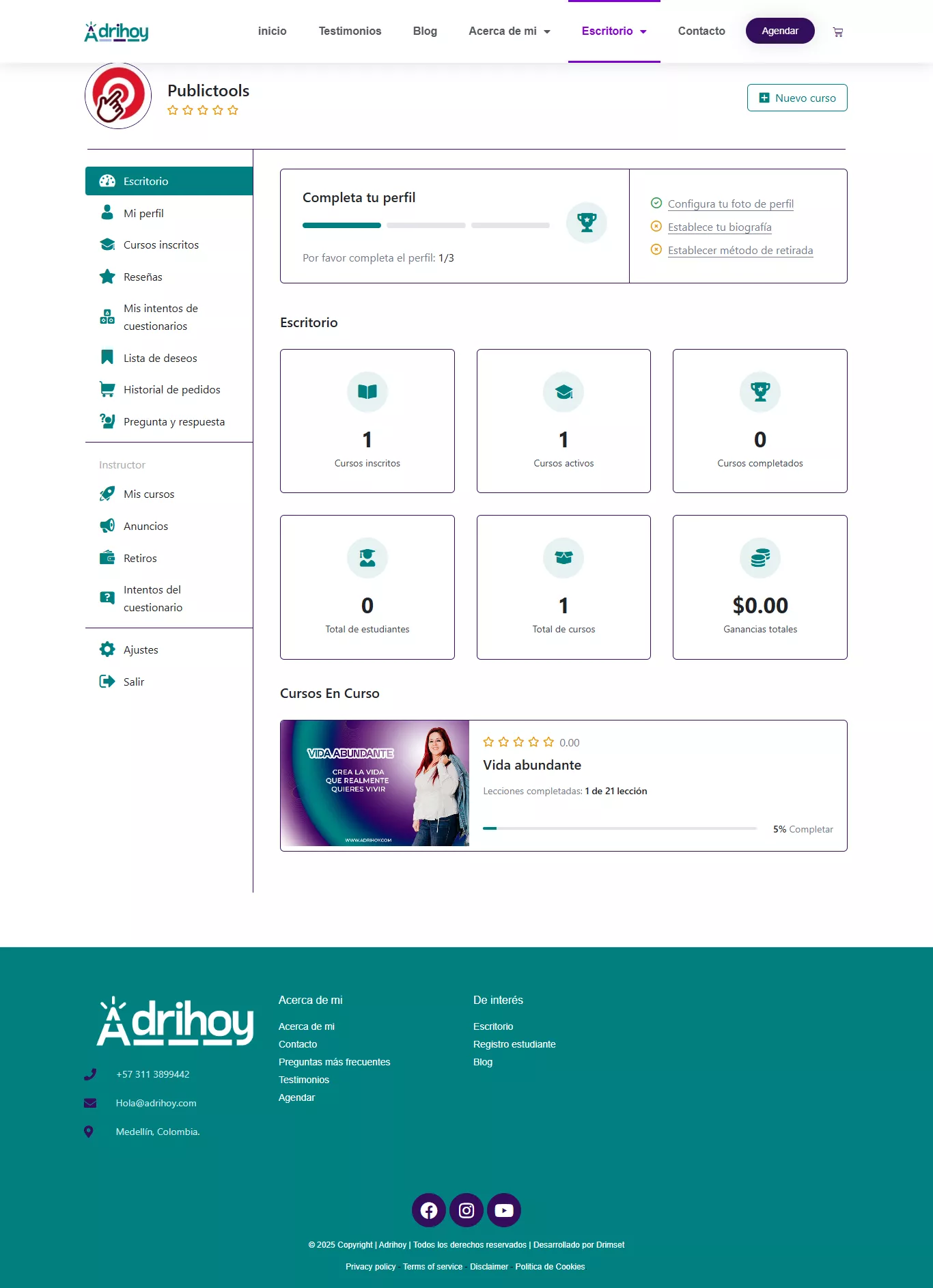 Ahora Adriana puede vender cursos, cobrar desde su plataforma y acompañar a más personas sin depender solo de sesiones uno a uno.